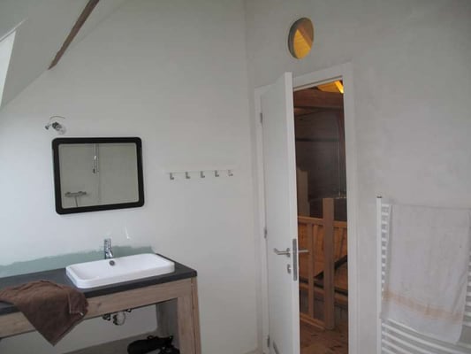 - bedroom with double bed and washbasin