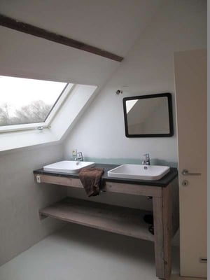 - spacious bathroom with shower and double sink